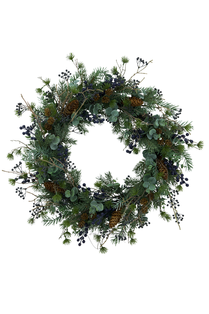 Венок Real Touch с эвкалиптом и ягодами (D55см) - Сине-зеленый