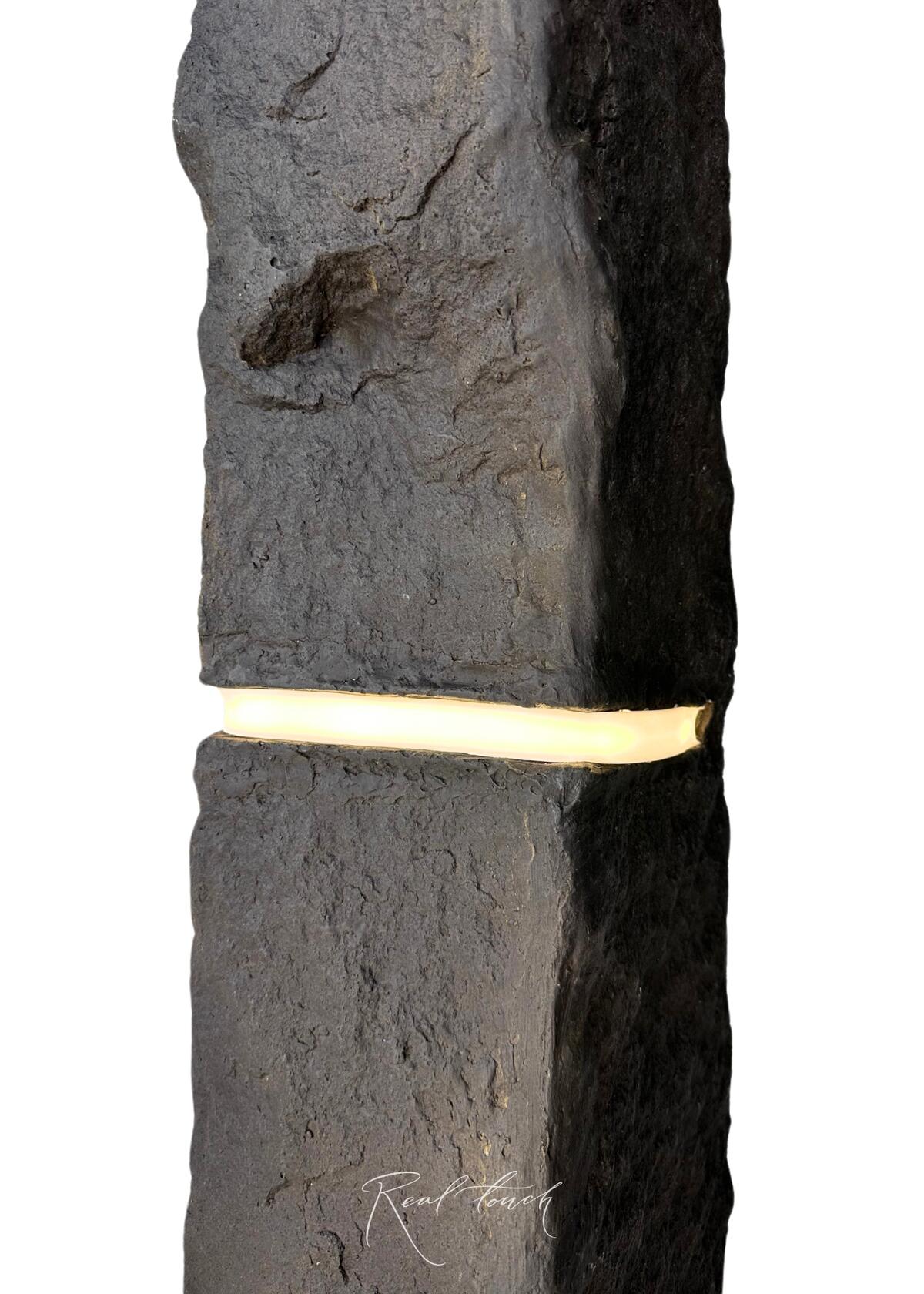 Этот стильный искусственный камень, выполненный из цемента и стекловаты, станет изысканным элементом декора, добавляющим интерьеру нотки природной эстетики и современного шика. Покрытый глубокой серой краской, он создает эффект натурального камня, а встроенная подсветка мягко рассеивает свет, наполняя пространство уютом и загадочным мерцанием.