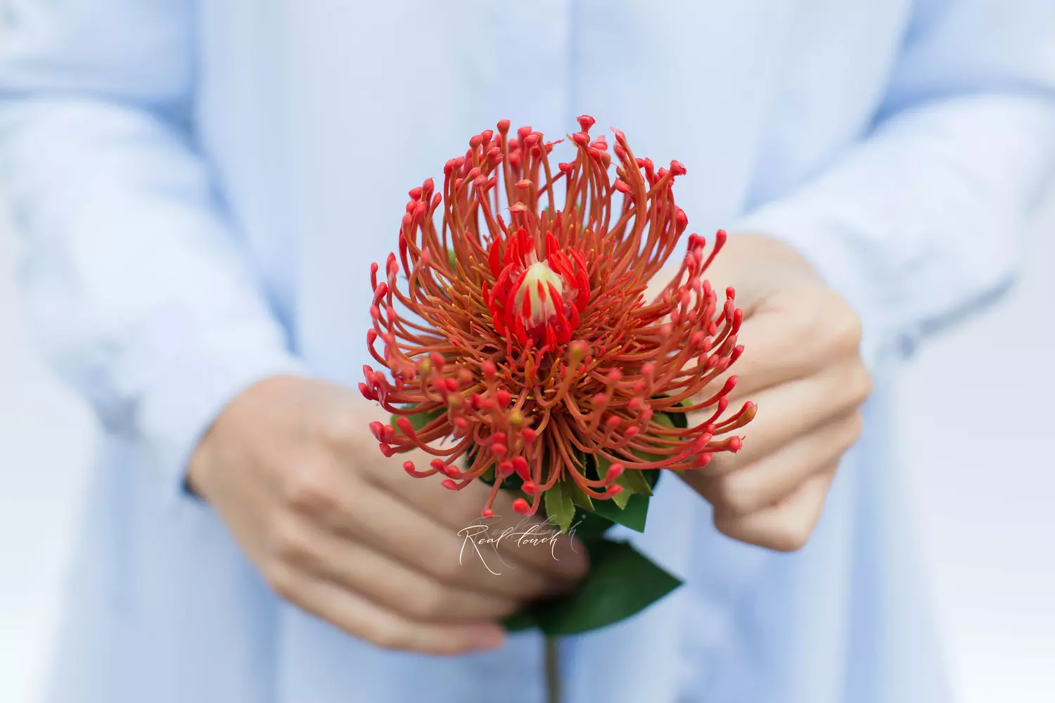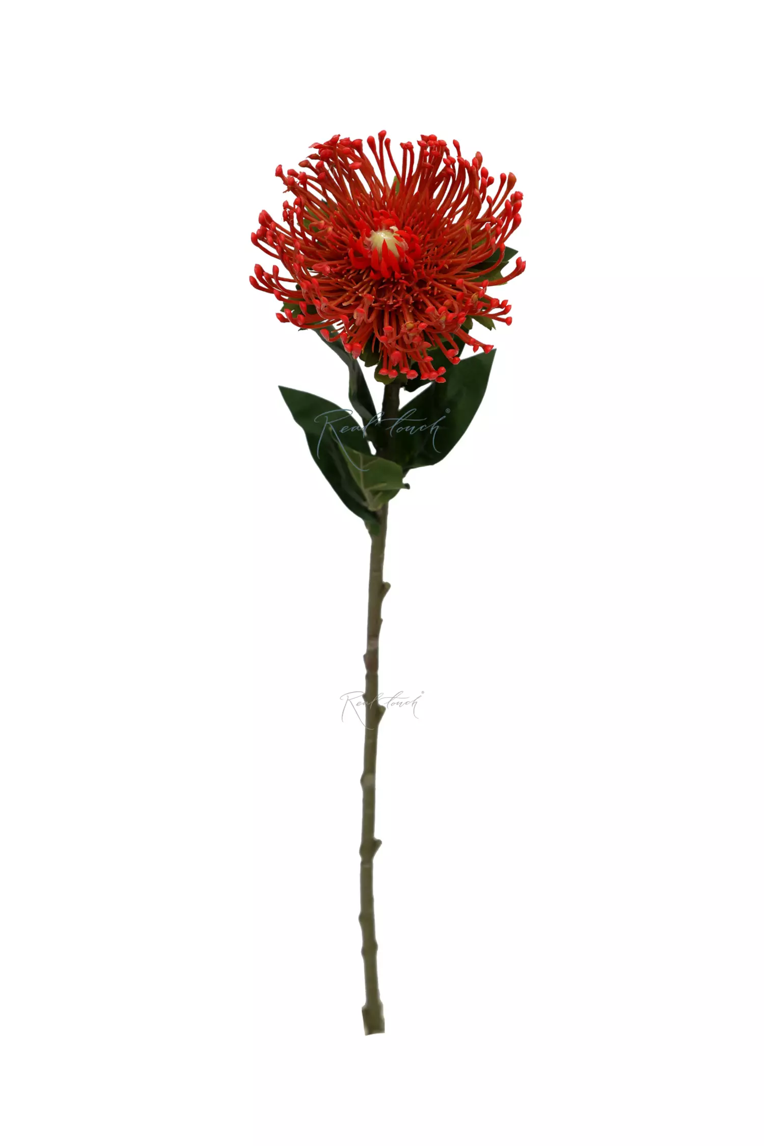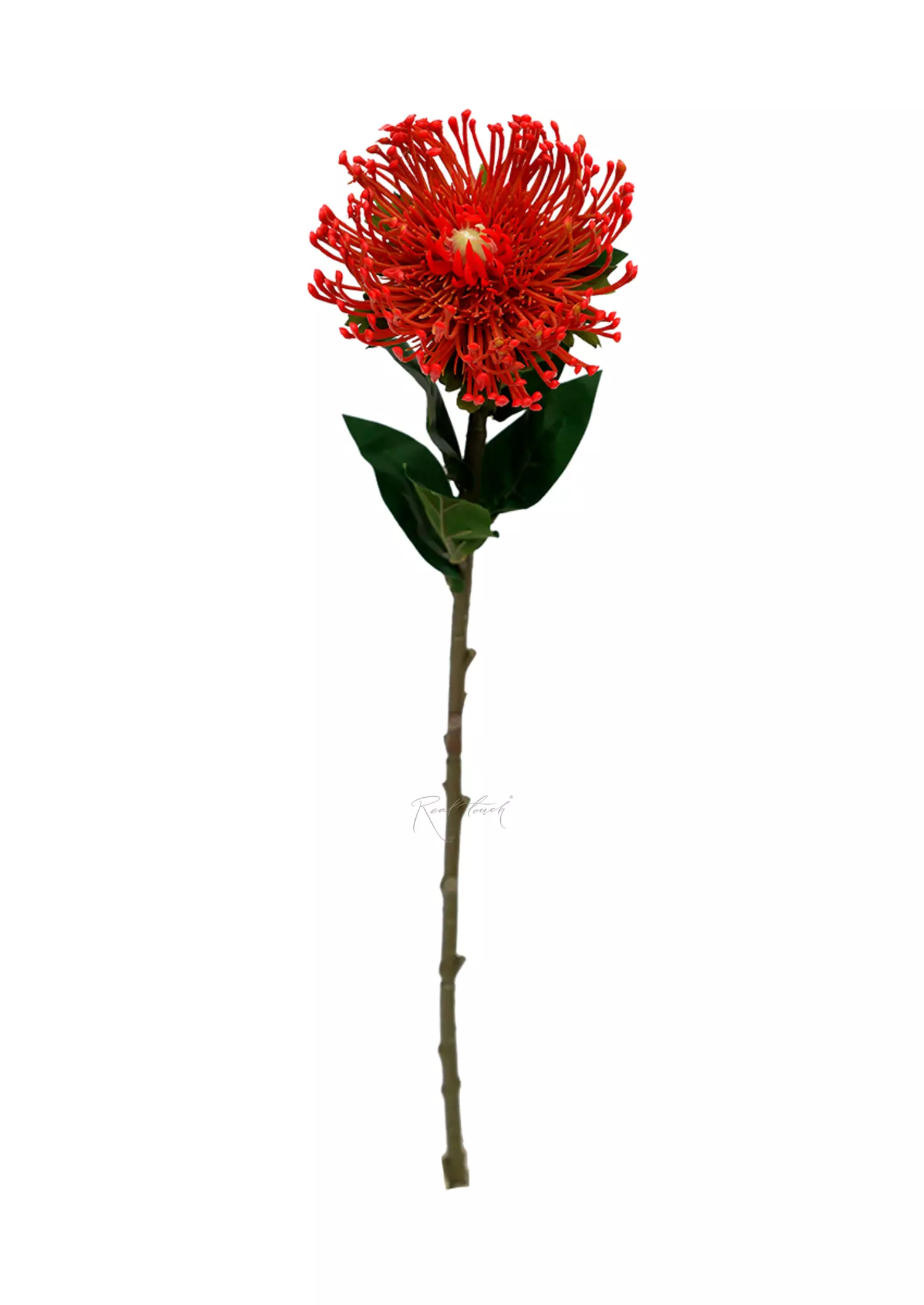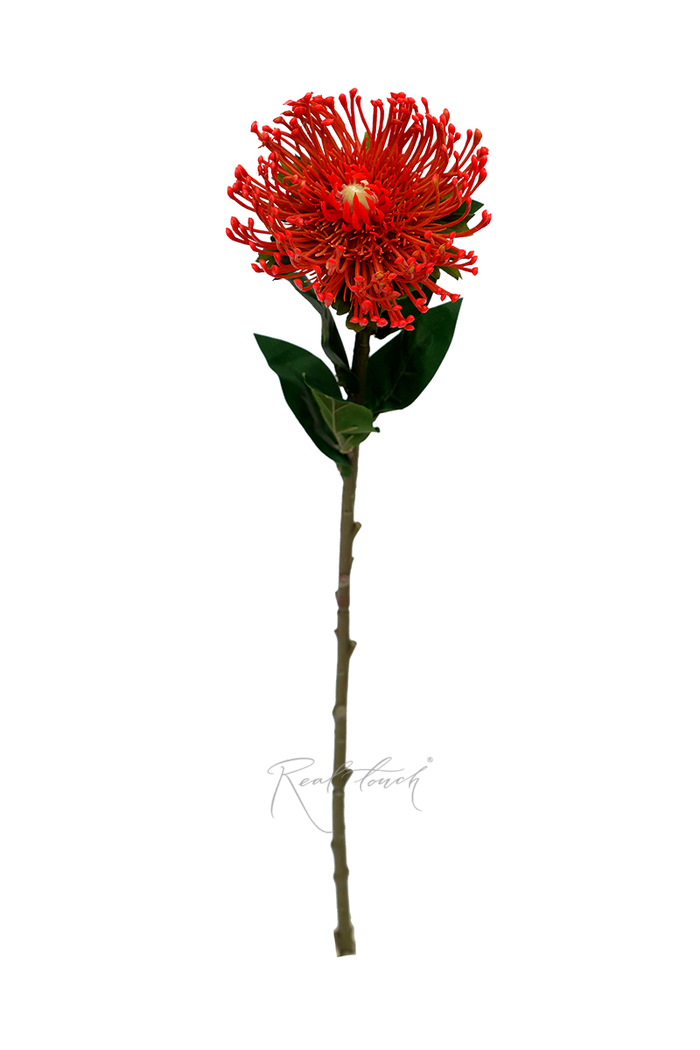 Протея небольшая, бутон выполнен их пластика, листья из текстиля. Благодаря материалу прекрасно держит необходимую форму.