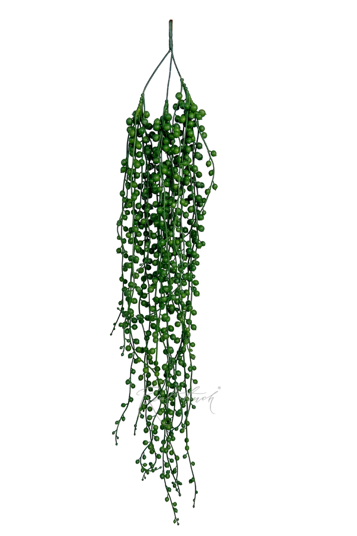 Сенецио - растение напоминает суккулент своими мясистыми листочками. Они при внешней хрупкости очень плотные, крепко держатся на основной ветке. Длина растения - 73 см, крепление - 5 см, состоит из 3-х отростков: 2 по 73 см, 1 - 70см.