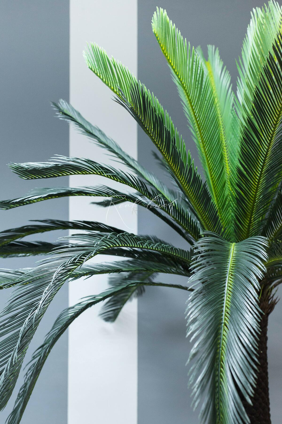 В ассортименте 4 размера разных пальм Цикас от 70см до 210см! Впечатляет объем листвы, внимание производителя к деталям в прокраске и масштабы! Темно-зеленые цвет сочетаются с более светлым, игольчатость листа контрастирует с бархатистостью ствола. У данной модели практически плюшевый ствол! Цикас 210см - 42 листа по 90см, ствол 105см (немного неустойчивая и тяжелая, нужно соответсвующее кашпо)