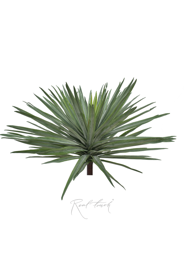 Юкка в виде пышной розетки из множества прямых узких листьев. Материал - плотный силикон. Листья зеленого цвета имеют переход от более светлого оттенка в центре к более темному, усиливая эффект напылением по всей длине листа. Внутри каждого листа есть металлический усилитель, удерживающий лист и позволяющий корректировать форму.