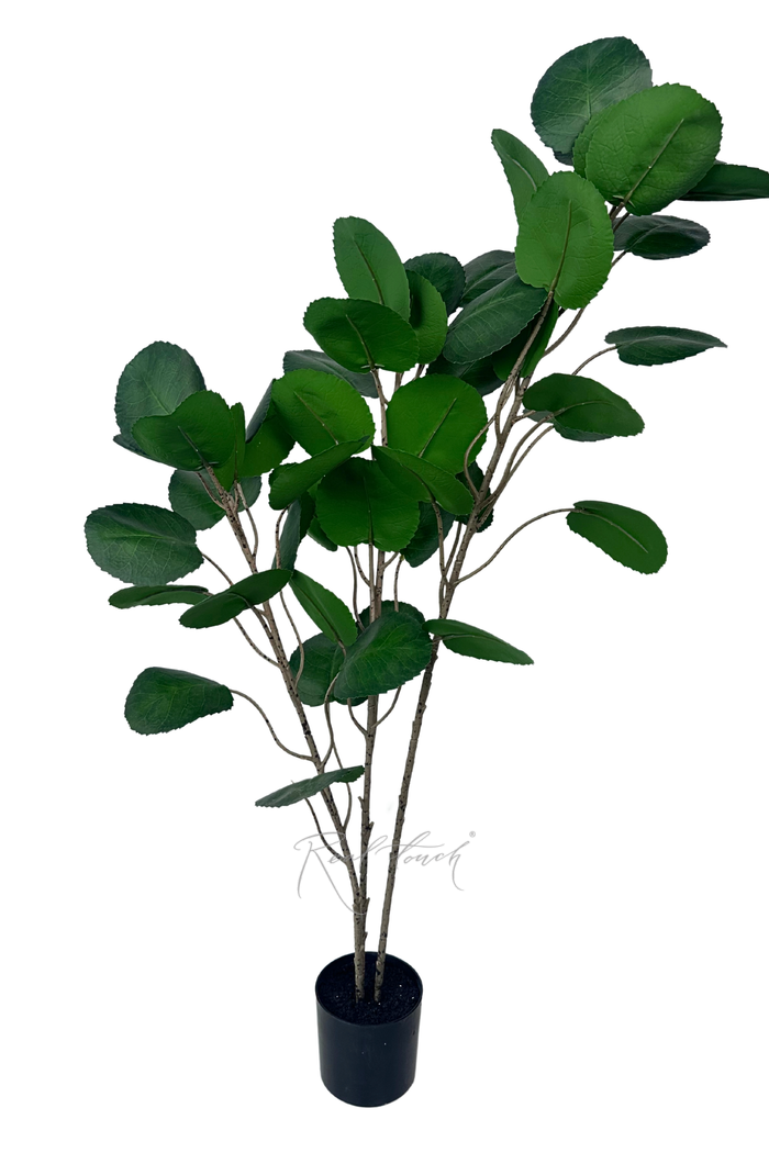 Листья округлой формы с резными краями, что является характерной особенностью аралии. Они выполнены из водонепроницаемого волокна, что делает их долговечными и устойчивыми к внешним факторам. Благодаря 3D-печати прожилок, текстура листьев выглядит максимально естественно. Темно-зеленый оттенок придает растению насыщенный и благородный вид. На обратной стороне листовой пластины расположены усилители, которые помогают листьям сохранять форму.