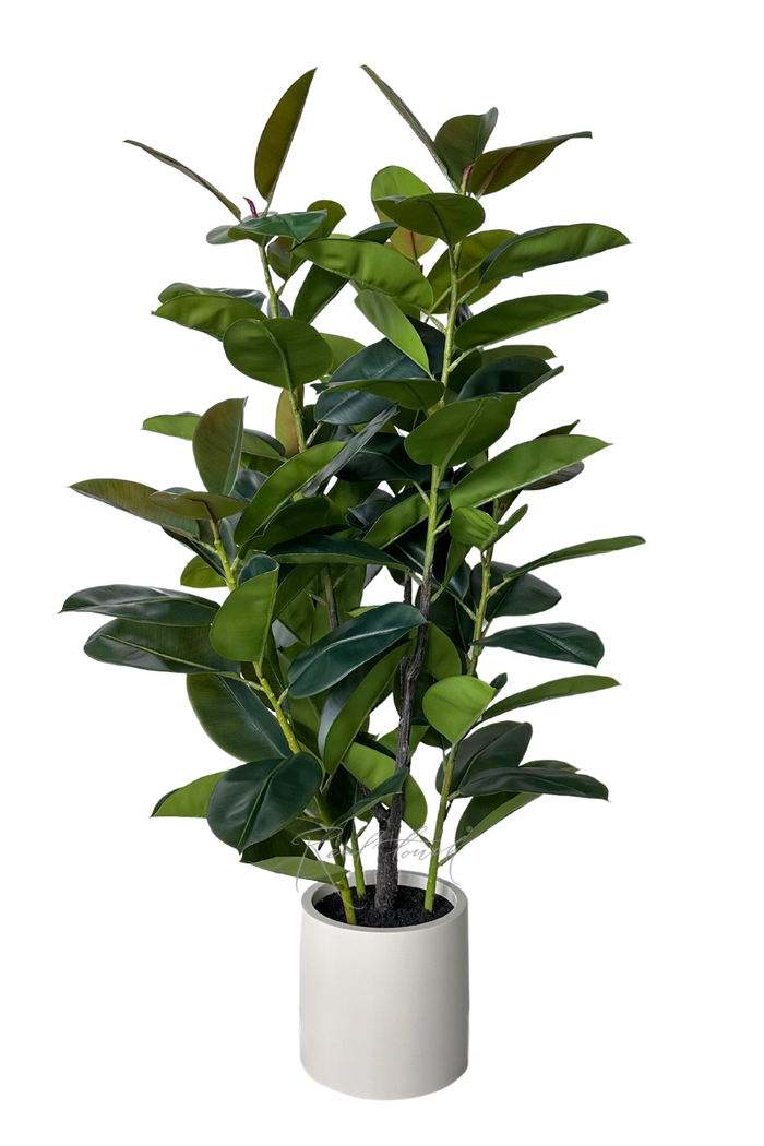 Фикус Эластика в декоративном кашпо — 150 см. Величественный, элегантный и невероятно эффектный! Фикус Эластика (каучуконосный) — это настоящий интерьерный must-have, который привнесет в ваш дом или офис атмосферу уюта, свежести и стиля. Его крупные листья насыщенного зеленого цвета и мощный ствол с шестью ответвлениями создают впечатление настоящего домашнего дерева, добавляя пространству объема и жизни.