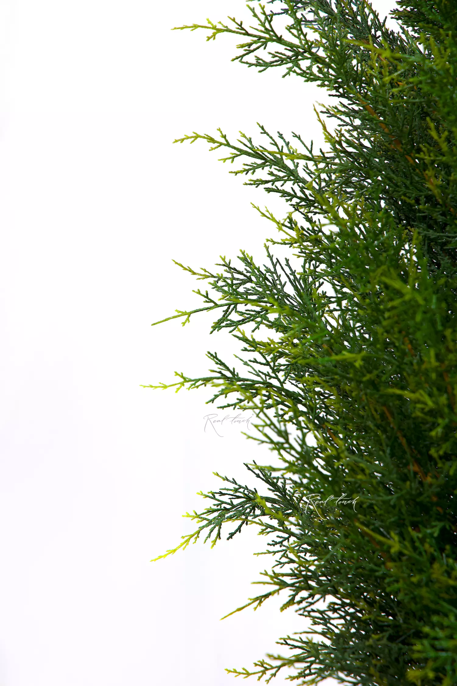 Западная туя из пластика представлена в трех размерах 210/180/150см. Крона имеет узкую пирамидальную форму, из-под которой видно тонкий ствол серо-коричневого цвета. Чешуевидная хвоя густая, яркая и блестящая, имеет переход цвета от темно-зеленого к светло-зеленому на кончиках, как у настоящего дерева. В материал хвои добавлено вещество, препятствующее воздействию ультрафиолетовых излучений и защищающее цвет от выгорания, что продлевает срок эксплуатации на улице. Доступны поштучно. Гармонично смотрятся набором.