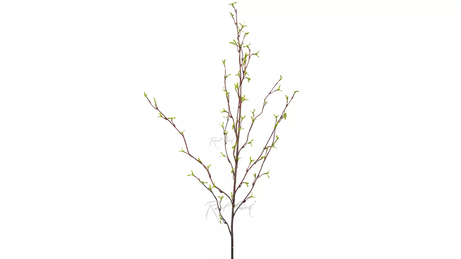 Ветка состоит из основного стебля и 11ти тонких ответвлений, на концах которых расположены молодые листочки светло-зелёного цвета. Листья выполнены из силикона, что придаёт им мягкость, реалистичную текстуру. Их аккуратная форма и расположение создают ощущение пробуждения природы и весеннего обновления.