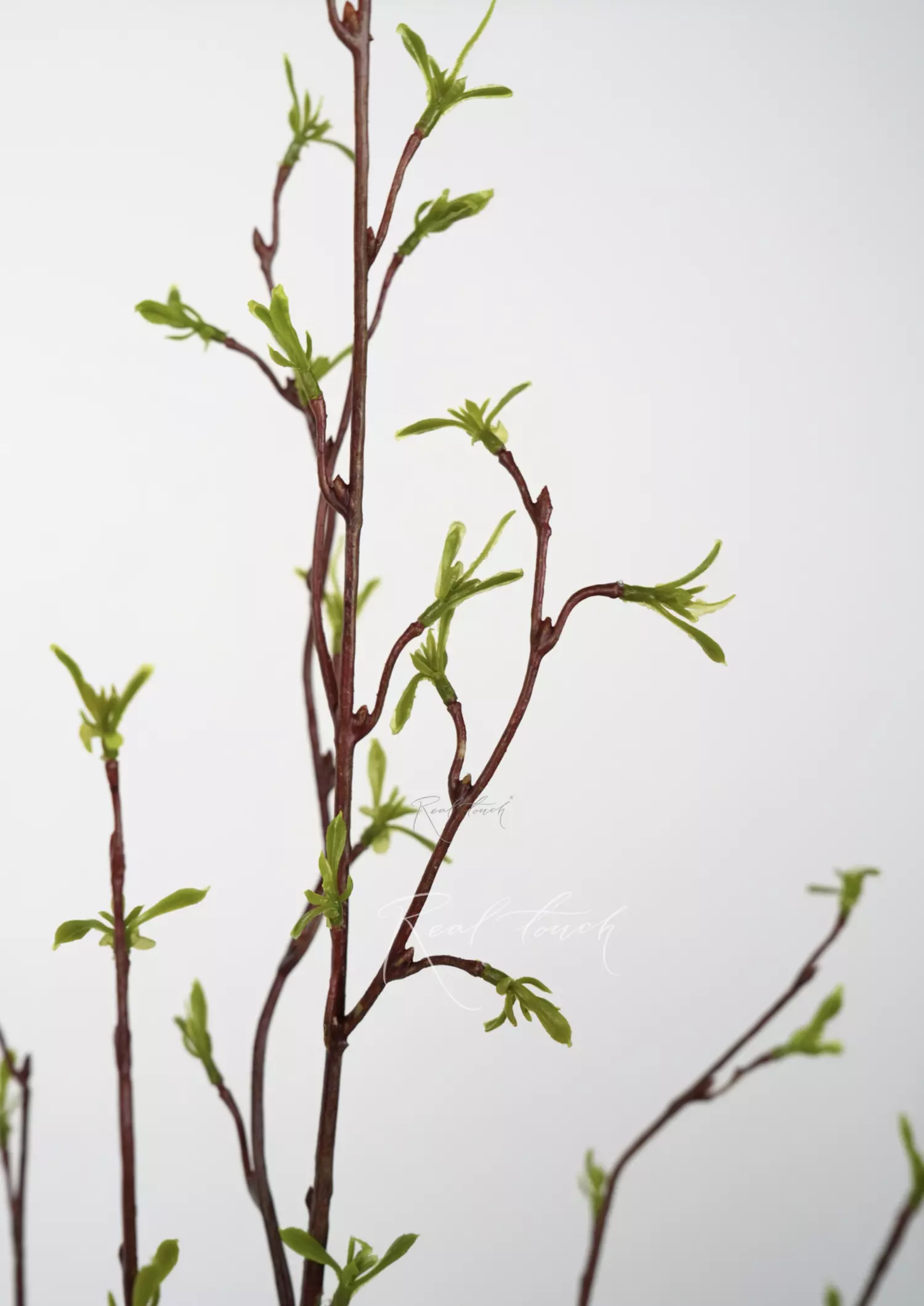 Ветка с молодыми листочками – это изящный декоративный элемент в ассортименте Real Touch, выполненный с высокой реалистичностью и проработкой деталей. Благодаря своей высоте и минималистичному дизайну ветка прекрасно вписывается в современные и классические интерьеры, добавляя ощущение свежести и лёгкости.