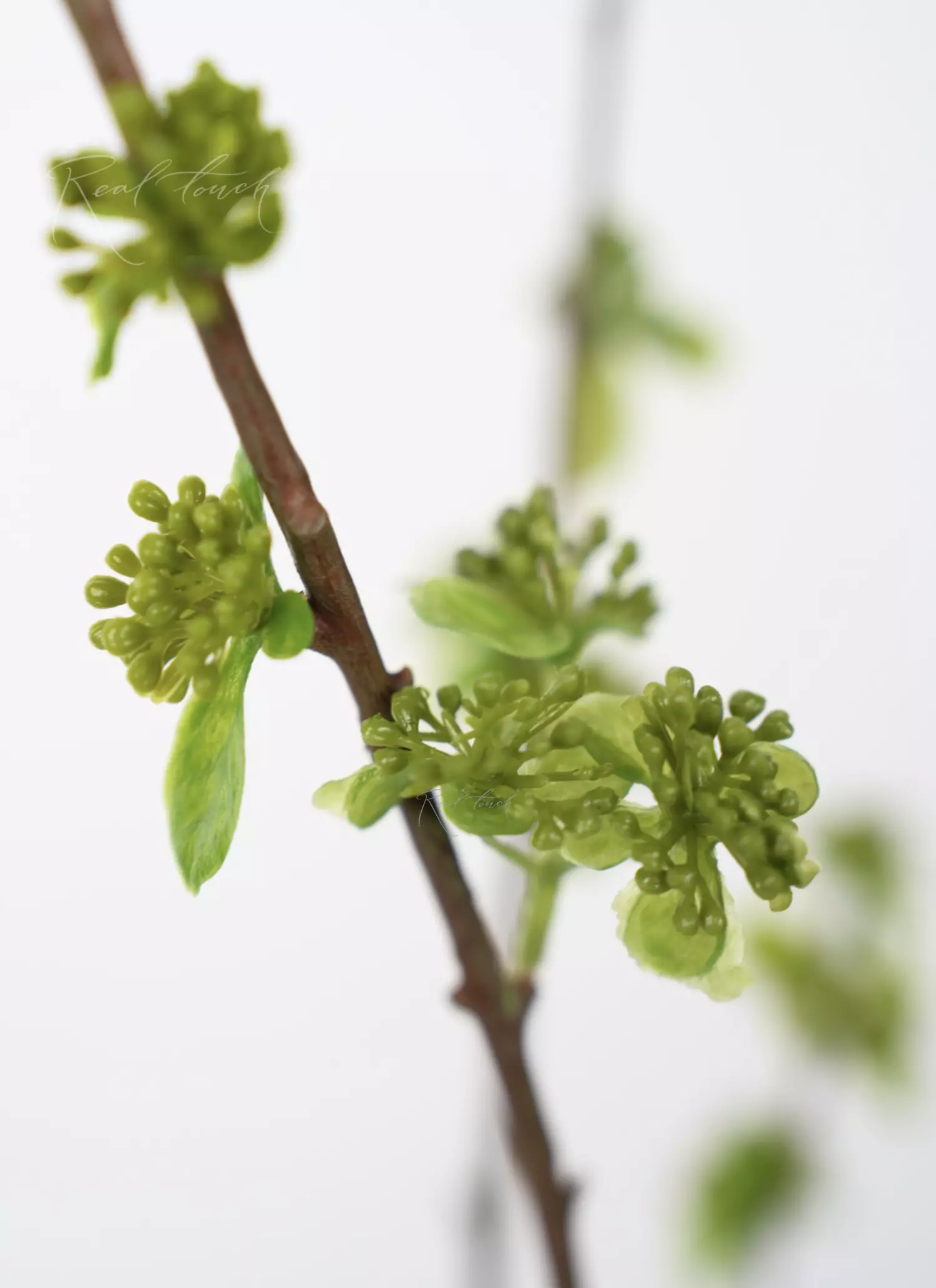 Ветка с молодыми листьями и почками Real Touch подходит для создания весенних композиций, а также её можно использовать, как самостоятельный элемент в высоких стеклянных или керамических вазах.