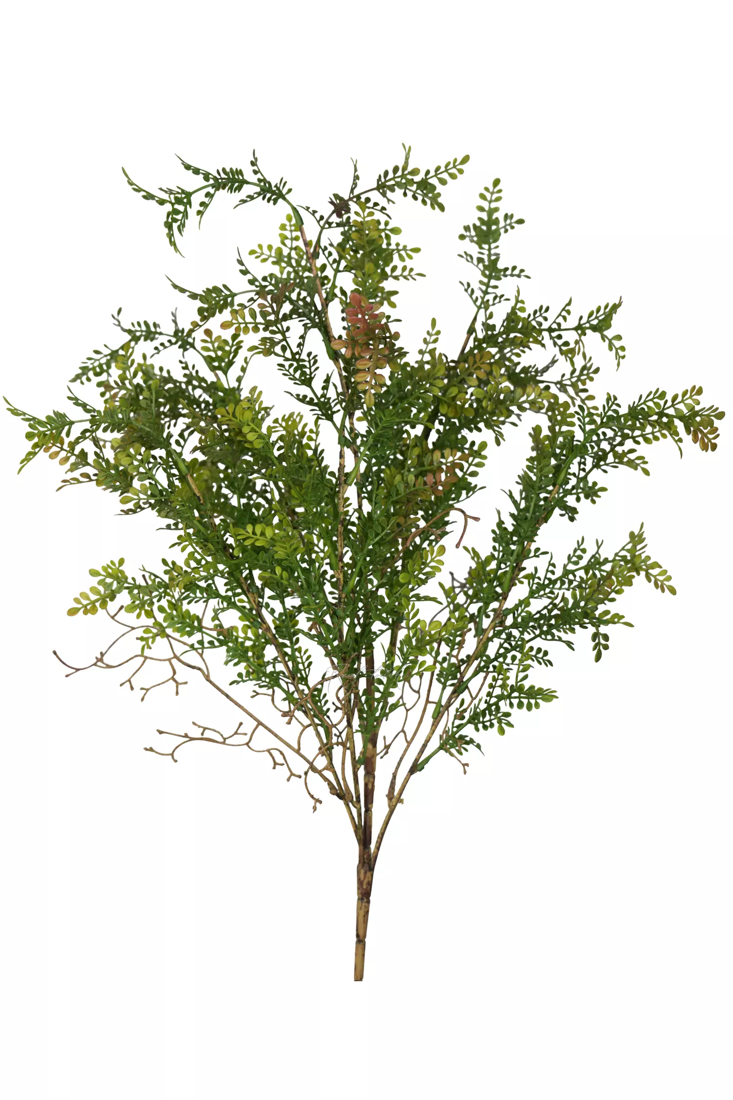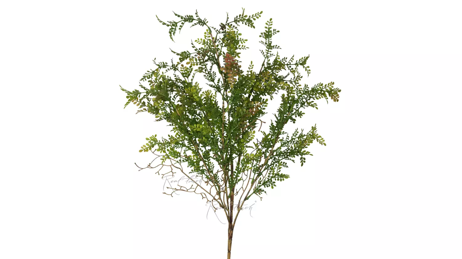 Листья изготовлены из мягкого пластика с естественным градиентом от зелёного до светло-зелёного оттенка. Они имеют изогнутую форму, расположены группами, создавая эффект плотной, живой листвы.