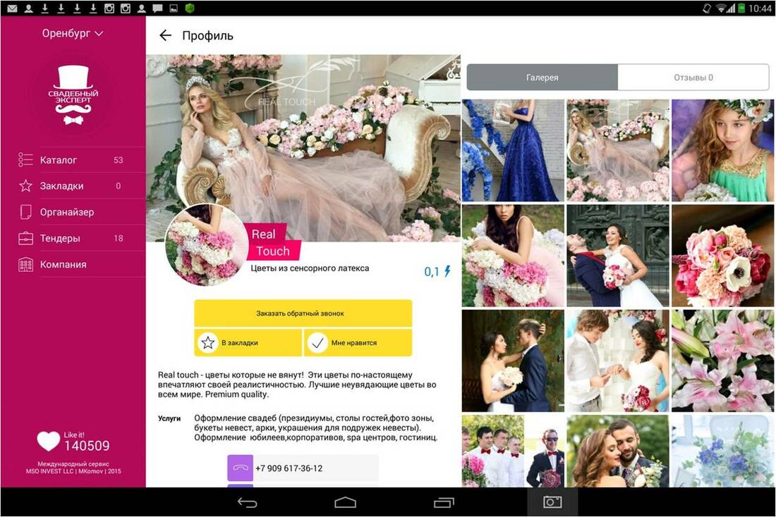 Компания Real Touch на сайте и в мобильном приложении «Свадебный эксперт»
