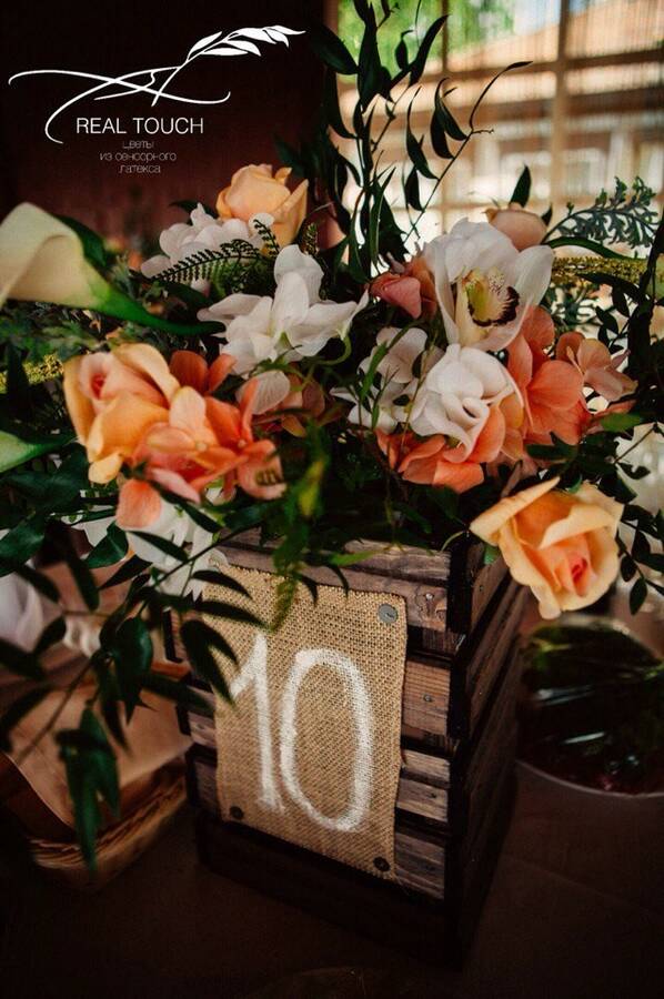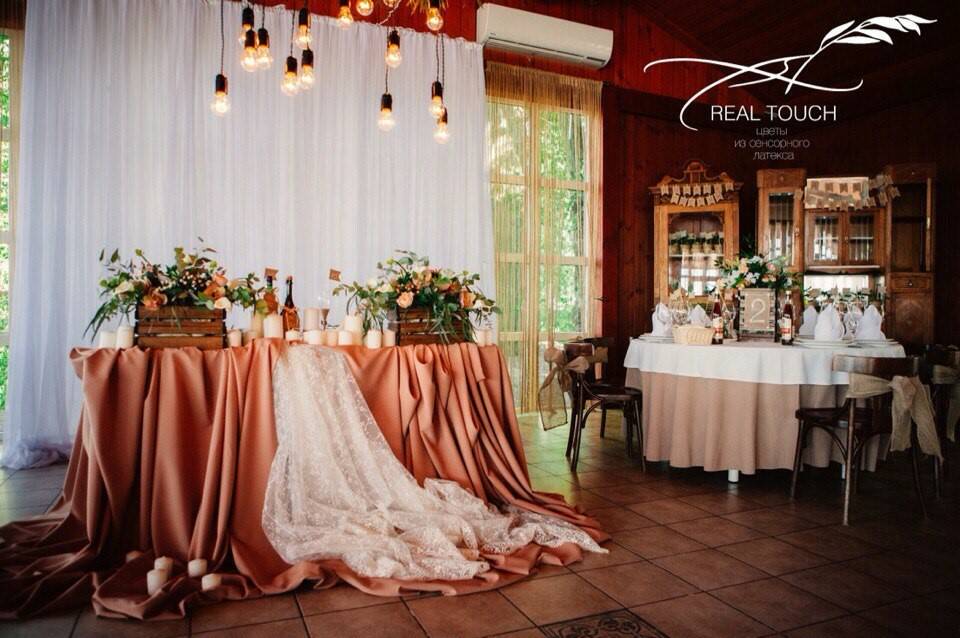 Настоящий тренд последних лет в свадебном декоре – свадьбы в стиле рустик. В переводе с французского «rustic» означает – деревенский, простой. Деревенский, а значит – уютный, домашний, тёплый. Именно такой получилась свадьба Дмитрия и Елены в Ростове-на-Дону. Основной тон оформлению задали цветы и композиции Real Touch, которые помогли по-настоящему передать модный стиль рустик, сделать свадьбу не просто стильной, но и очень уютной!