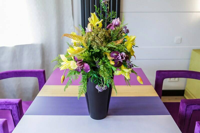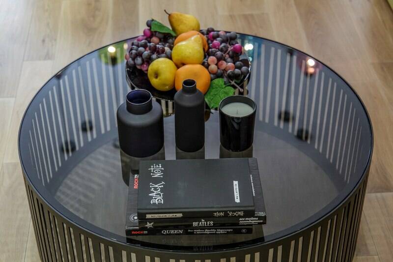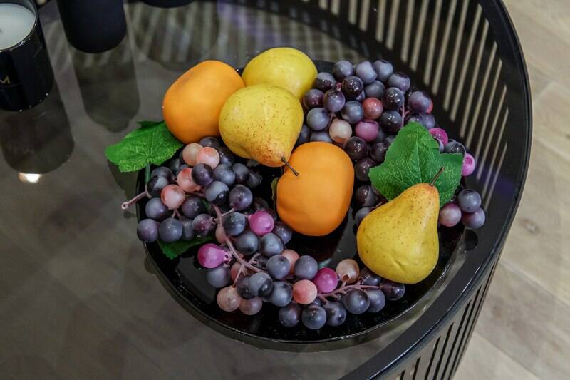 И снова наши цветы и фрукты внесли свой вклад в преображение скромного интерьера гостиной в стильный, динамичный и смелый как сами хозяева квартиры.